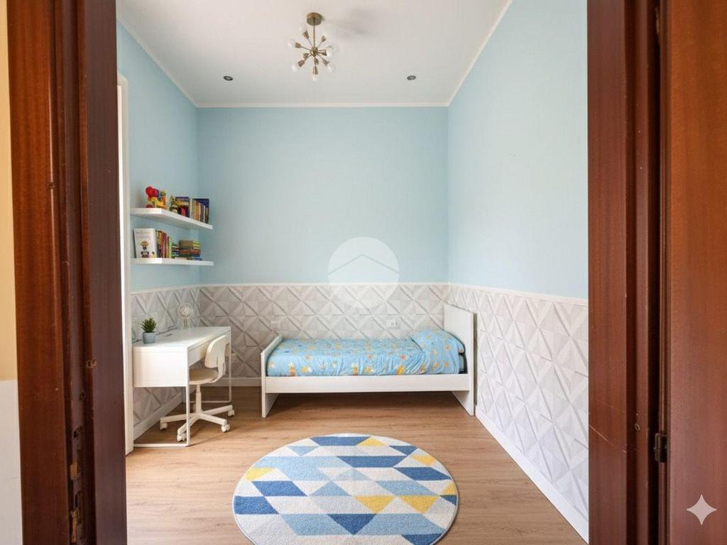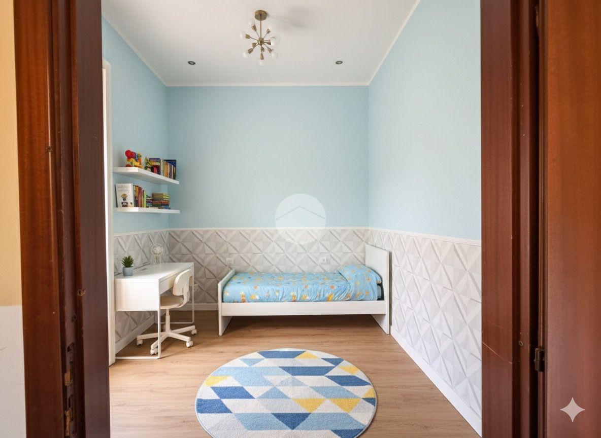 La soluzione è disposta in: soggiorno, cucina, camera da letto, cameretta, bagno e un terrazzo che rende l'immobile luminoso ed arioso.