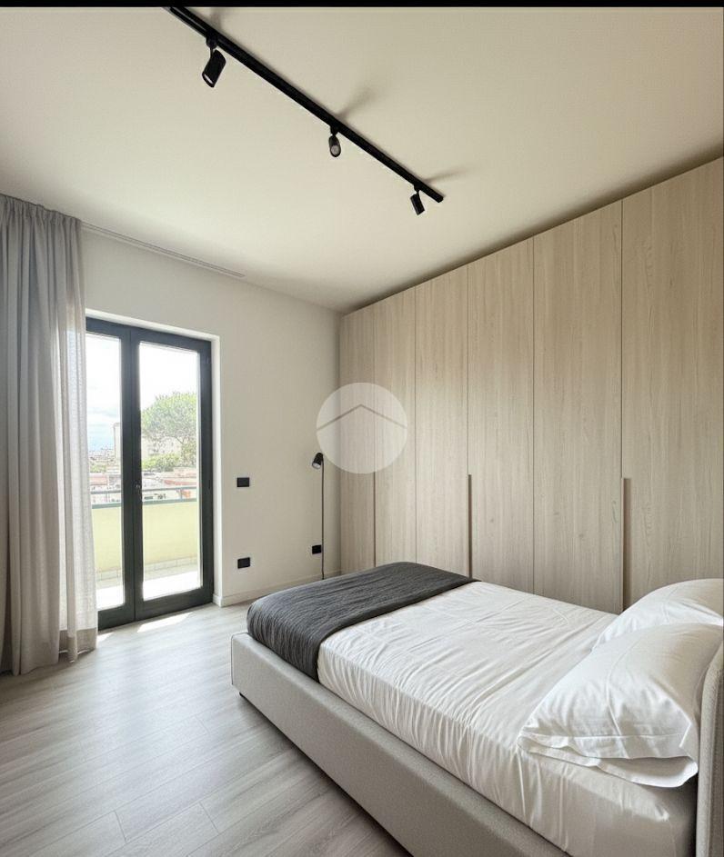 ->Ampia balconata che ricopre l'intera soluzione, con affaccio su Viale Guglielmo Marconi.