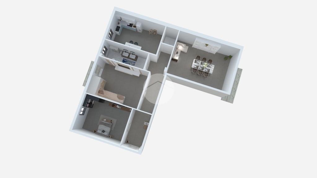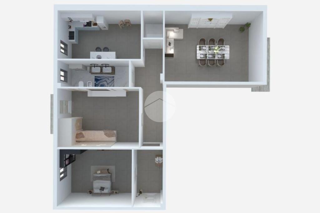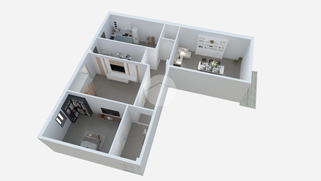 La soluzione è disposta in: soggiorno, cucina abitabile, camera , cameretta, bagno (con vasca), e due balconi, a doppia esposizione, rendendo gli ambienti luminosi ed ariosi.